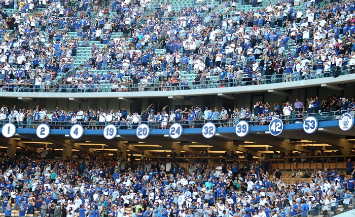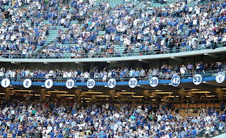 Jackie Robinson spent ten seasons for the Dodgers playing first base, third base, leftfield and second base where he put numbers that speak for themselves that got him elected into the Hall of Fame in 1962 and they retired his number 42. He was on six NL Pennant teams, was on the 1955 World Series Championship team, made all six of his All-Star appearances, won the NL MVP once, won Rookie of the year, won a batting title once, led the NL in stolen bases twice, and was the first black player to break the color barrier in baseball and in the Hall of Fame while there. He also finished in the top 10 for a many offensive categories in Dodgers history like having the third highest WAR for position players, third highest offensive WAR, fourth highest on base percentage, the seventh most walks and runs scored to name some.