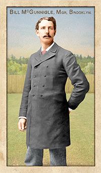 Bill McGunnigle a former pitcher and outfield managed the Bridegrooms for three seasons where he finished with the eleventh most wins with 267 and guided them to back to back pennants. One in what the AL was back then and then the NL the following year after the team became a part of the NL becoming the first of three professional American sports franchises to do so. He also has the best winning percentage in the history of the Dodgers franchise among those who managed at least one full season. As a manager he employed a tin whistle to signal his players and some local sources indicate that he once wore a pair of bricklayer‘s gloves in a game against Harvard in 1875, becoming the first catcher to wear a glove in a baseball game.